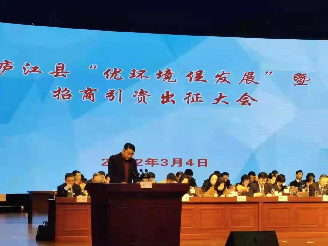 2022年3月4日,廬江縣“優(yōu)環(huán)境 促發(fā)展”暨招商投資出征大會在廬江大劇院1號廳舉辦,由縣委副書記、縣長周天斌主持召開。