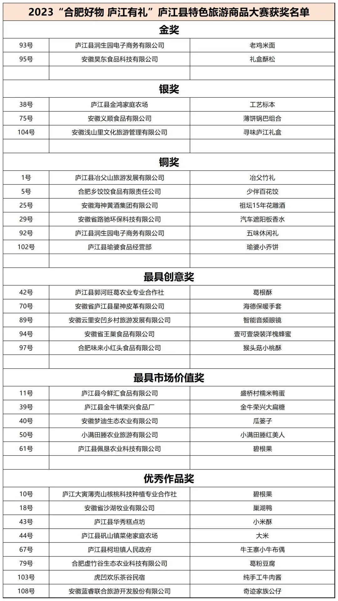 11月12日,由合肥市文化和旅游局、中共廬江縣委人才工作領(lǐng)導(dǎo)小組辦公室指導(dǎo),廬江縣文化和旅游局主辦,廬江縣經(jīng)濟(jì)和信息化局、廬江縣農(nóng)業(yè)農(nóng)村局、廬江縣商務(wù)局、廬江縣科技局協(xié)辦,廬江縣旅游協(xié)會(huì)承辦的“合肥好物 廬江有禮”2023合肥·廬江特色旅游商品大賽成功舉辦。